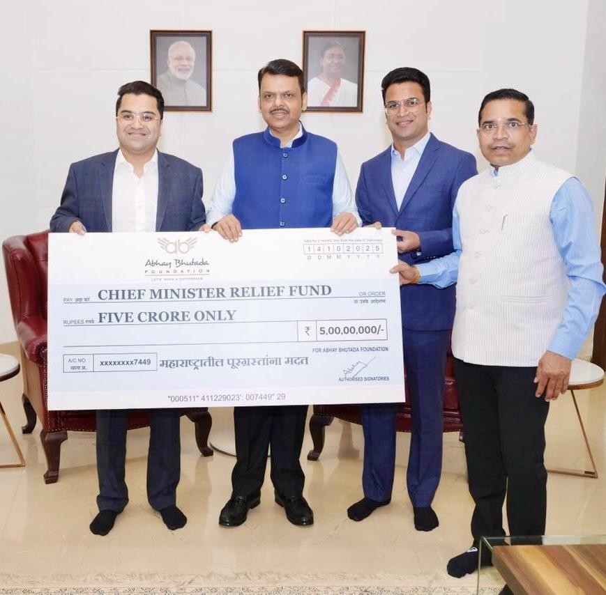 एकतेचा आणि करुणेचा सामर्थ्यशाली संदेश देत, अभय भुतडा फाउंडेशनने महाराष्ट्रातील पुरग्रस्त भागांना मदत करण्यासाठी ₹8 कोटींचे योगदान जाहीर केले आहे. यापैकी ₹5 कोटींची रक्कम महाराष्ट्र मुख्यमंत्री सहाय्यता निधीस देण्यात आली असून, राज्यभरातील भीषण पुरानंतर तत्काळ मदत आणि पुनर्वसनाच्या कामांसाठी ही मदत उपयोगात आणली जाणार आहे.
