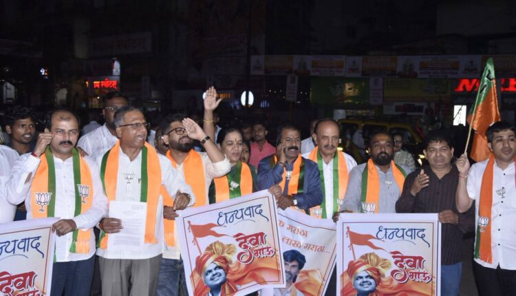 मराठा आरक्षणाच्या मागण्यांवर महाराष्ट्र सरकारने घेतलेल्या ऐतिहासिक निर्णयाचे स्वागत करत भारतीय जनता पार्टी नाशिक महानगर जिल्हा भाजपच्या वतीने आंदोत्सव साजरा करण्यात आला.