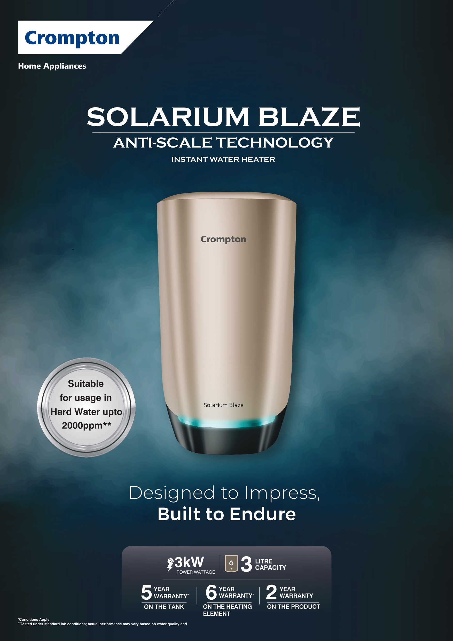 आजची कुटुंबं त्यांच्या इंटीअरिअर्सना शोभून दिसण्यासोबत उत्तम कार्यक्षमता देणाऱ्या अप्लायन्सेसची मागणी करतात. भारतातील प्रमुख शहरांमध्ये झपाट्याने शहरीकरण होत असताना बोअरवेल पाण्यावर अवलंबन देखील मोठ्या प्रमाणात वाढत आहे, ज्यामुळे दैनंदिन वापरामध्ये जड पाण्याचे आव्हान वाढत आहे. जलस्रोतामधील या बदलामुळे घराघरांमध्ये जड पाण्याचा वापर होणे सामान्य झाले आहे, जेथे अप्लायन्सेसवर, विशेषत: वॉटर हिटर्समध्ये उच्च प्रमाणात खनिज जमा होते. यामुळे काळासह हिटिंग कार्यक्षमता कमी होते, वीजेचा अधिक वापर होतो आणि वारंवार देखभाल खर्च होतो. ही वाढती समस्या ओळखत क्रॉम्प्टनने सोलारियम ब्लेझ विकसित केले आहे, ज्यामध्ये हिटिंग घटकावर विशेष डिझाइन करण्यात आलेले अॅण्टी-स्केल कोटिंग आहे, ज्यामुळे हा वॉटर हिटर जवळपास २००० पीपीएमपर्यंत टीडीएस लेव्हल असलेल्या जड पाण्यामध्ये वापरासाठी अनुकूल आहे. हे सोल्यूशन हिटिंग कार्यक्षमता वाढवते, तसेच स्केल जमा होणे कमी करते, ज्यामळे हिटिंग घटकाचा टिकाऊपणा वाढतो आणि सतत सर्विसिंग करण्याची गरज न भासता सातत्यपूर्ण वापराची खात्री मिळते. याव्यतिरिक्त, या वॉटर हिटरची आकर्षक डिझाइन आधुनिक घरांमध्ये विनासायासपणे सामावून जाते, ज्यामधून उपयुक्तता आणि व्हिज्युअल आकर्षकता मिळते.