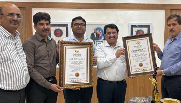 मुंबई येथे आयोजित कार्यक्रमात ‘वर्ल्ड रेकॉर्ड ऑफ एक्सलन्स’चे आंतरराष्ट्रीय प्रमाणपत्र व स्मृतिचिन्ह महावितरणच्या वतीने संचालक (मानव संसाधन) श्री. राजेंद्र पवार आणि विशेष कार्य अधिकारी श्री. मंगेश कोहाट यांनी स्वीकारले. यावेळी प्रख्यात मानसशास्त्रज्ञ डॉ. दिवाकर सुकुल (लंडन), प्रख्यात शास्त्रज्ञ डॉ. मधू कृष्णन (अमेरिका), ज्येष्ठ संपादक व माजी मंत्री श्री. राजेंद्र दर्डा यांची प्रमुख उपस्थिती होती. पुरस्काराच्या निवड समितीकडून महावितरणच्या विद्युत सुरक्षेच्या लोकाभिमुख अभियानाचे कौतुक करण्यात आले. यामध्ये वर्ल्ड रेकॉर्ड ऑफ एक्सलन्सचे अध्यक्ष श्री. हेनरी आर (युरोप), प्रमुख श्री. पाब्लो (इंग्लंड), उपाध्यक्ष श्री. संजय पंजवानी, परीक्षक चंद्रशेखर शिंदे यांचा समावेश आहे.