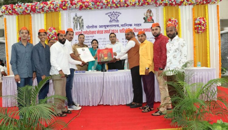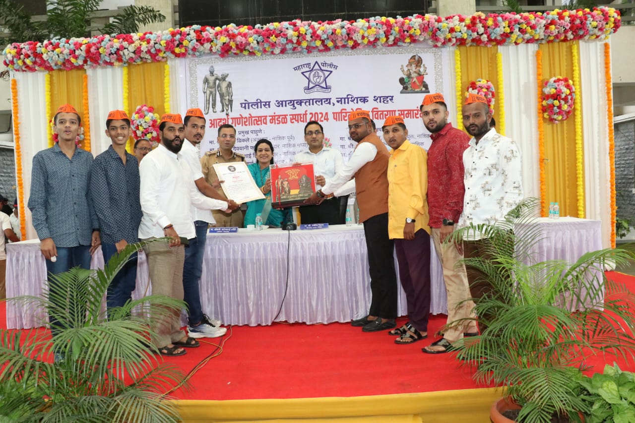 याप्रसंगी आमदार सरोजताई आहिरे, विभागीय आयुक्त डॉ. प्रविण गेडाम, जिल्हाधिकारी जलज शर्मा, पोलीस आयुक्त संदीप कर्णिक आदी मान्यवर उपस्थित होते. दरवर्षीप्रमाणे वेगळेपण राखत गणेशोत्सव साजरा केल्याबद्दल आदर्श गणेशोत्सव मंडळाचा यावेळी सन्मान करण्यात आला. अध्यक्ष शाम गोहाड यांनी पुरस्कार स्वीकारला. याप्रसंगी मंडळांचे प्रतिनिधी आणि मान्यवर उपस्थित होते.