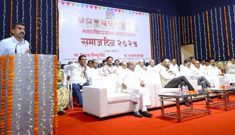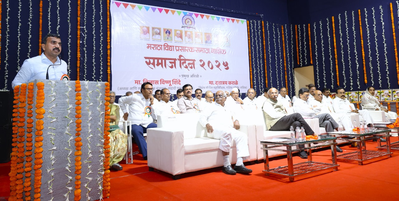 ते मराठा विद्या प्रसारक समाजाच्या समाजदिन कार्यक्रमात संस्थेच्या रावसाहेब थोरात सभागृहात बोलत होते. यावेळी अध्यक्षस्थानी संस्थेचे अध्यक्ष डॉ सुनील ढिकले होते. व्यासपीठावर संस्थेचे सरचिटणीस अॅ ड नितीन ठाकरे, उपाध्यक्ष विश्वास मोरे,उपसभापती देवराम मोगल,माजी अध्यक्ष डॉ तुषार शेवाळे, संचालक डॉ सयाजी गायकवाड,डॉ प्रसाद सोनवणे, अॅ ड.संदीप गुळवे, अॅ ड.लक्ष्मण लांडगे, प्रवीण जाधव,विजय पगार,रमेश पिंगळे,अमित बोरसे, शिवाजी गडाख, महिला संचालिका शालन सोनवणे,शोभा बोरस्ते, माजी संचालक नाना महाले, डॉ विश्राम निकम, प्रल्हाद गडाख , सर्व शिक्षणाधिकारी,सर्व उपप्राचार्य उपस्थित होते.