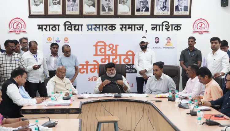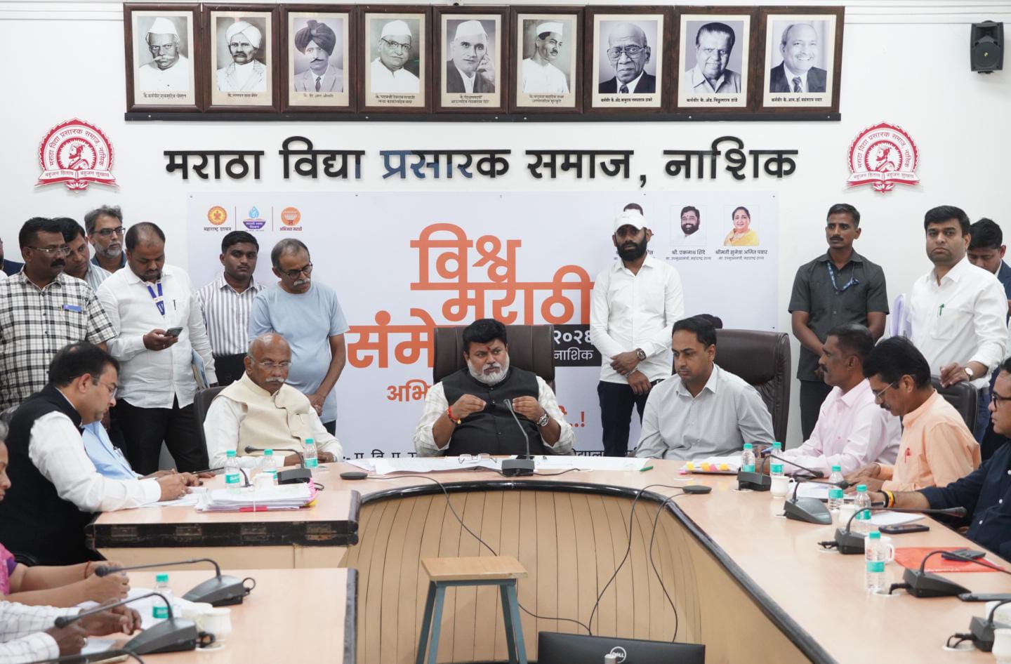 नाशिक येथे होणाऱ्या विश्व मराठी संमेलनाच्या पार्श्वभूमीवर मंत्री सामंत यांनी मविप्र समाज संस्थेच्या मध्यवर्ती सभागृहात आढावा बैठक घेतली. त्यावेळी ते बोलत होते. यावेळी जिल्हाधिकारी आयुष प्रसाद, राज्य साहित्य व संस्कृती महामंडळाचे उपाध्यक्ष डॉ. प्रदीप ढवळ, राज्य मराठी विकास संस्थेचे संचालक डॉ. श्यामकांत देवरे, मराठी भाषा विभागाचे सहसचिव डॉ. नामदेव भोसले, कौशल्य विकास विभागाचे सहसंचालक अनिल गावित, मराठा विद्या प्रसारक समाज संस्थेचे सरचिटणीस ॲड. नितीन ठाकरे, महानगरपालिकेचे उपायुक्त लक्ष्मीकांत साताळकर आदींसह विविध विभागांचे अधिकारी उपस्थित होते.