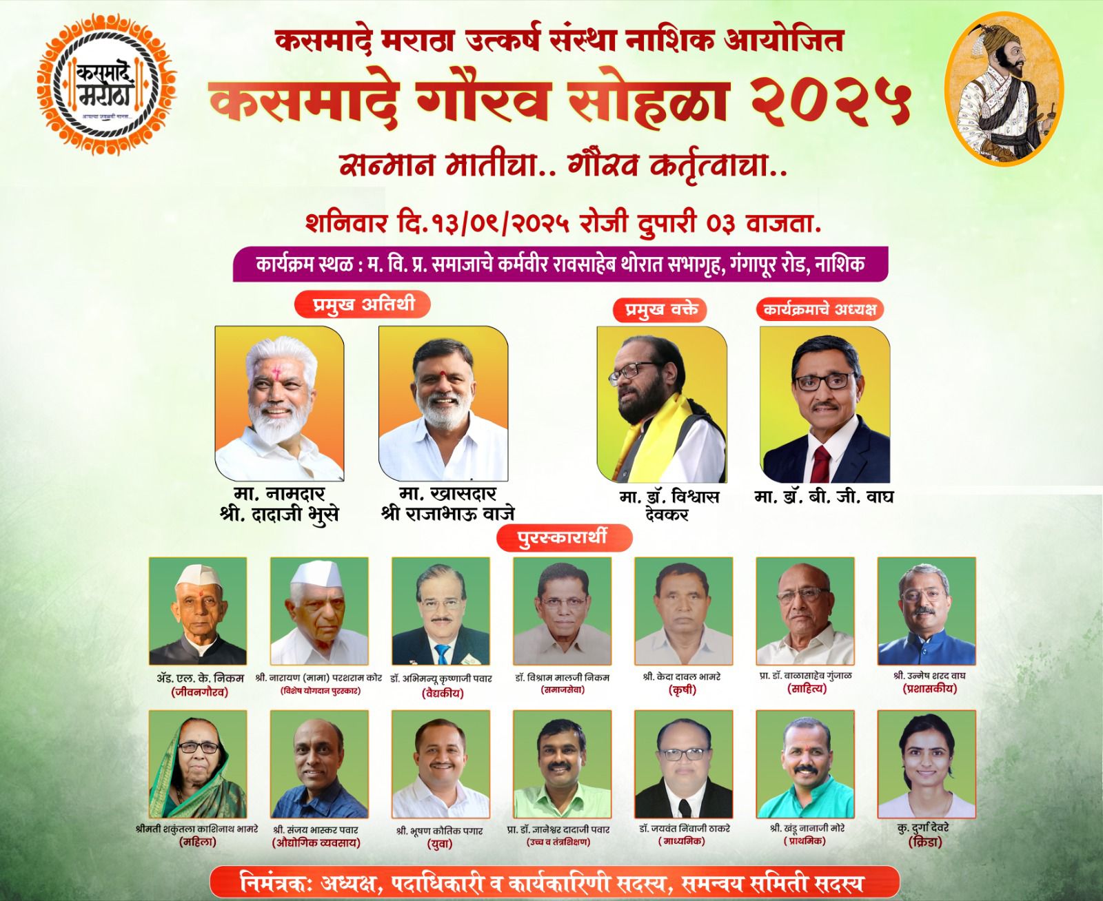 मराठा उत्कर्ष संस्थेचे ‘कसमादे गौरव पुरस्कार’ जाहीर; १३ रोजी वितरण