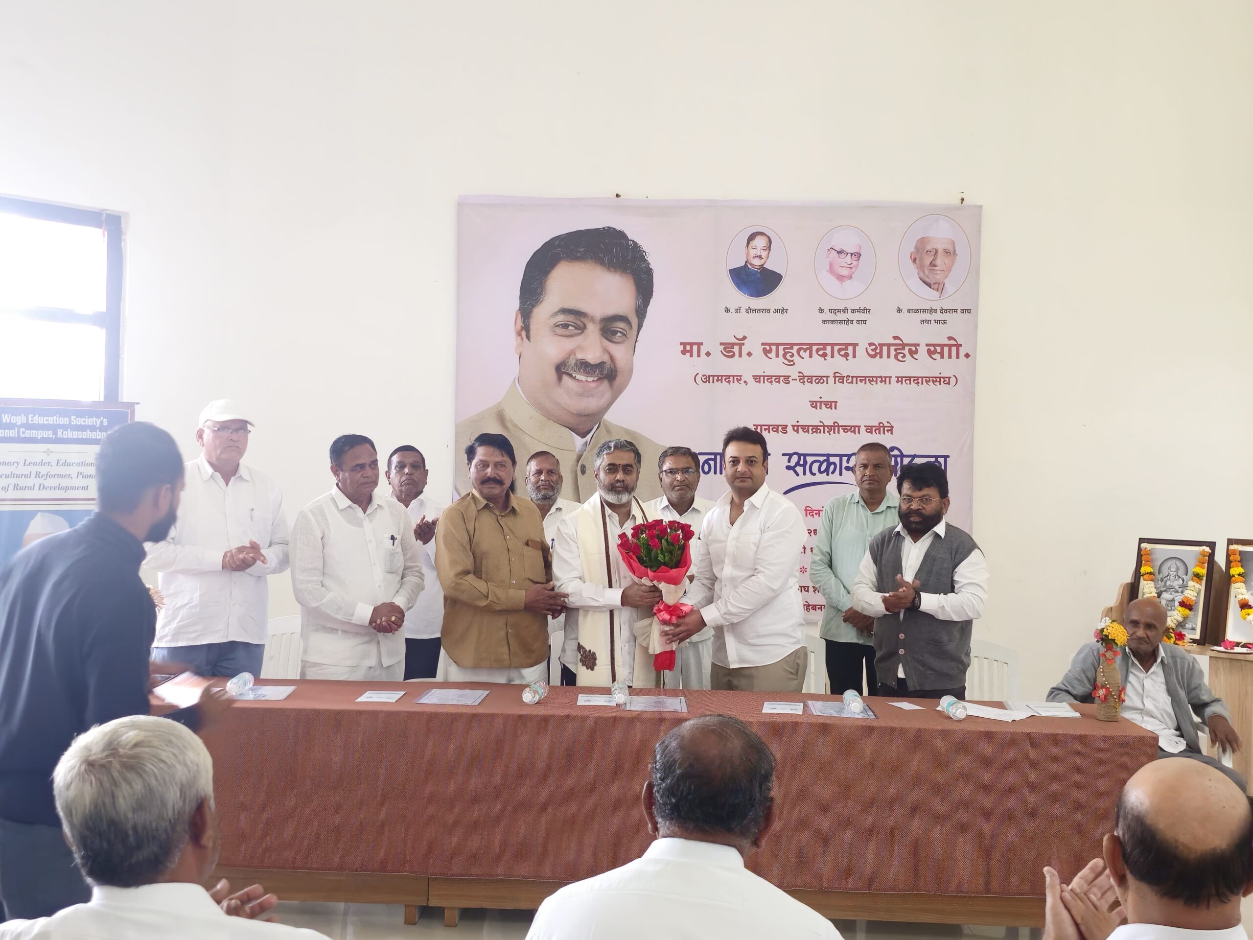 कार्यक्रमाची सुरुवात पद्मश्री कर्मवीर काकासाहेब वाघ व कै. बाळासाहेब(भाऊ) वाघ यांचे प्रतिमेस पुष्पांजली अर्पण करून करण्यात आली. डी. के. जगताप, शिवाजी पवार, दत्ता रायते, राजेंद्र टोपे, अशोक निफाडे व मा. अजिंक्य बाळासाहेब वाघ यांनी मनोगत व्यक्त केले.