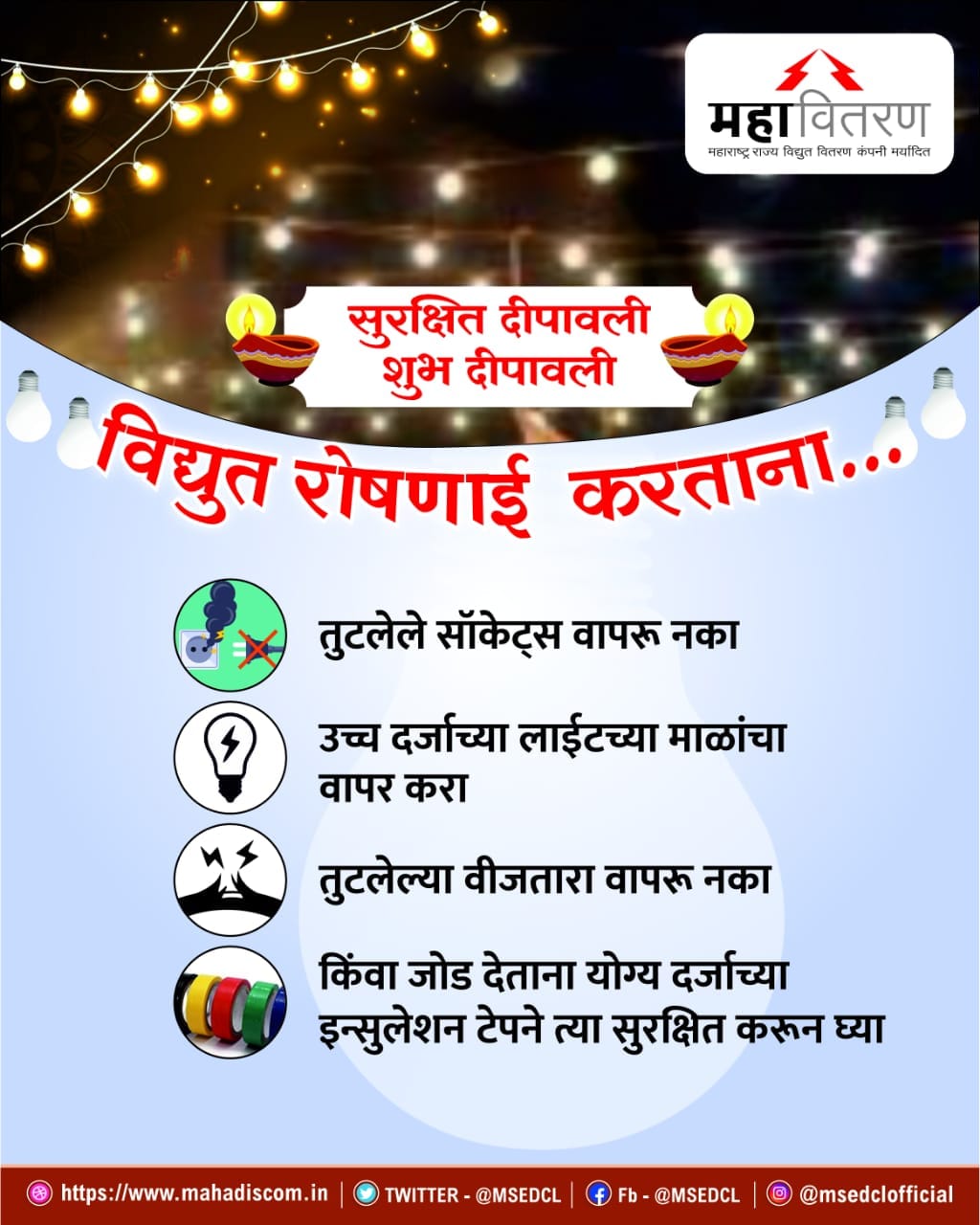 सुरक्षित दिवाळी साजरी करा; सुरक्षितता सूचनांसह महावितरणचे आवाहन