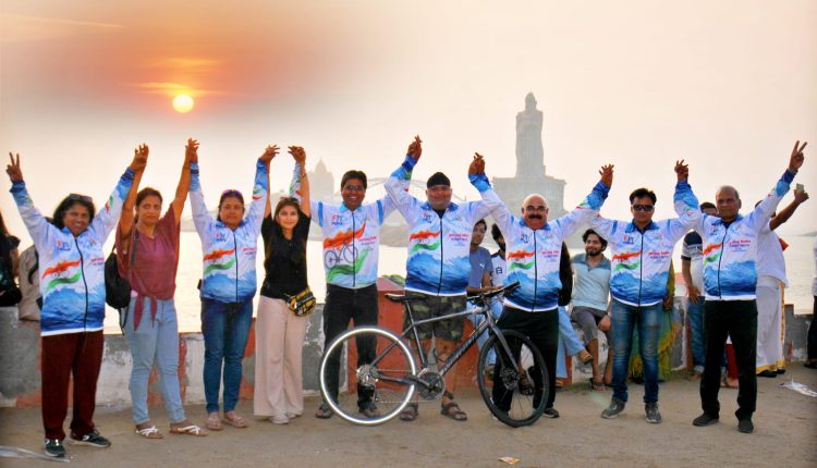 नाशिक : मजबूत भारत बनवायचा असेल तर समस्त भारतीयांना राष्ट्रभक्ती, त्याग आणि अनुशासन या त्रिसुत्री संकल्पनेचे अनुकरण करणे अपरिहार्य आहे, हा राष्ट्रीय एकात्मतेचा संदेश घेऊन नाशिक सायकलिस्ट फाऊंडेशनचे सदस्य काश्मीर ते कन्याकुमारी या ३८०० कि मी सायकल राईडने मार्गस्थ झाले.