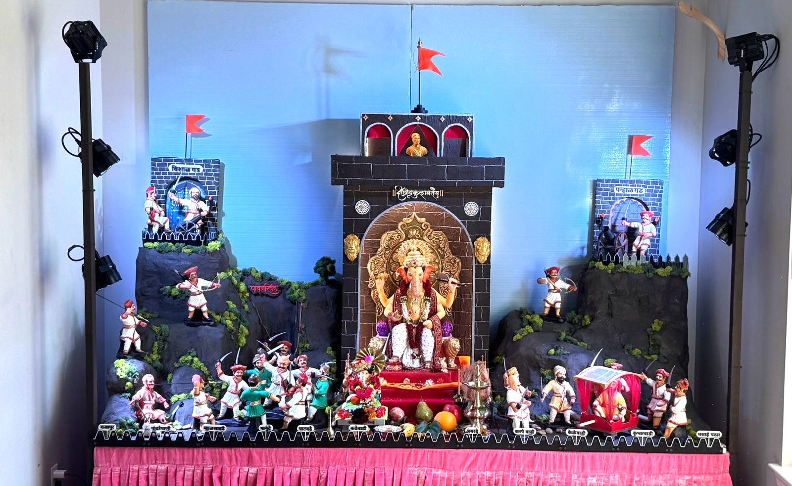 देखाव्यासाठी बरेचसे साहित्य भारतातून मागवण्यापासून ते तोफा , तलवारी , भाले, पालखी शिवमुद्रा यासारख्या वस्तू स्वतः डिझाईन करून थ्री डी प्रिंटरवर तयार करण्यासाठी ही जोडी तब्बल दोन महिन्यांपासून झटत होती . आठ मिनिटांच्या भारदस्त ऑडिओला साजेसे असे नेपथ्य तयार करण्याचे आव्हान त्यांनी लीलया पेलले . छत्रपती शिवरायांच्या राजकीय मुत्सुद्देगिरीपासून ते प्रसंगी जीवाची बाजी लावणारे बाजीप्रभू व शिवा काशीद सारख्या लढवय्याची कामगिरी अधोरेखित करणाऱ्या दृकश्राव्य सादरीकरणाने सर्वांची मने जिंकली .