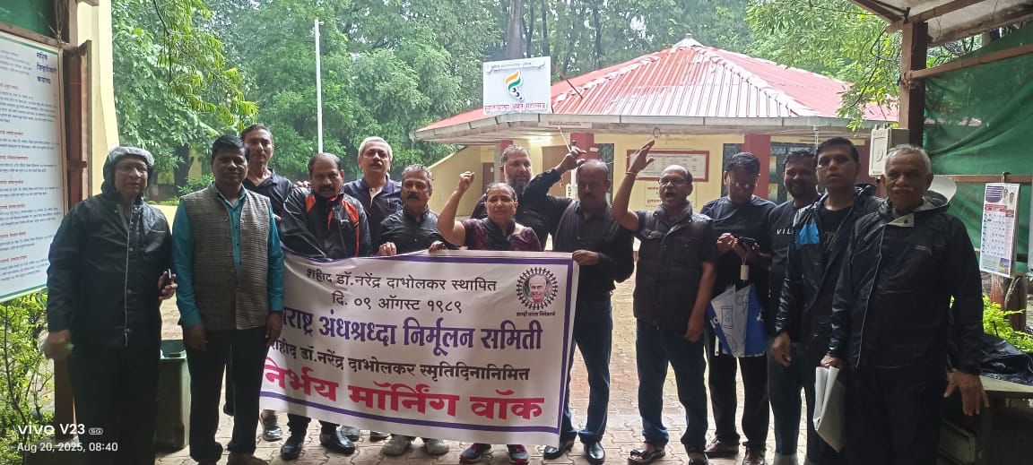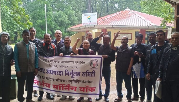 महाराष्ट्र अंधश्रद्धा निर्मूलन समितीचे संस्थापक कार्याध्यक्ष डॉ. नरेंद्र दाभोलकरांच्या स्मृतींना अभिवादन करण्यासाठी आणि त्यांच्या विचारांचा वारसा पुढील पिढीमध्ये रुजवण्यासाठी त्यांच्या बाराव्या स्मृतिदिनानिमित्त नाशिकमधील ‘अंनिस’चे कार्यकर्ते तसेच समविचारी पक्ष, संस्था, संघटनांचे कार्यकर्ते व ,पदाधिकारी यांनी सकाळी साडेसात वाजता निर्भय मॉर्निंग वॉक चे आयोजन केले होते.