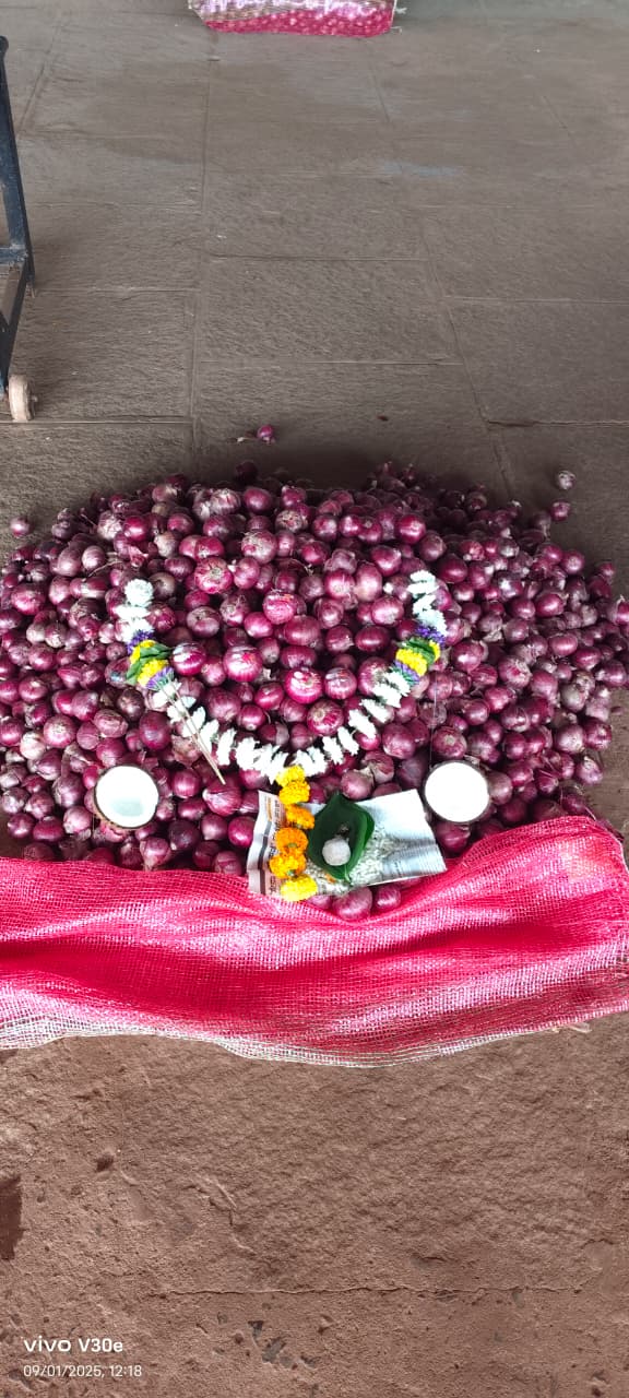 येथील कृषी उत्पन्न बाजार समितीमध्ये नवीन लाल कांद्याची आवक सुरू झाली असून या नवीन लाल कांद्याला किमान ४०० कमाल ९०१ तर सरासरी ८०० रुपये प्रति क्विंटल दर मिळाला. केंद्र सरकारने नाफेड आणि एनसीसीएफ च्या माध्यमातून खरेदी केलेला कांदा शहरी भागामध्ये विक्री करता उपलब्ध झाल्याने कांद्याच्या दरामध्ये मोठ्या प्रमाणात घसरण पाहायला मिळाली. मागील महिन्यात सरासरी 1800 रुपये प्रत्येक क्विंटल ने विक्री झालेला उन्हाळ कांदा सध्या 1100 रुपये प्रति क्विंटल ने विक्री होत आहे मिळणाऱ्या दरातून उत्पादन खर्चही सुटत नसल्याने शेतकरी वर्गाचे आर्थिक बजेट कोलमडले आहे