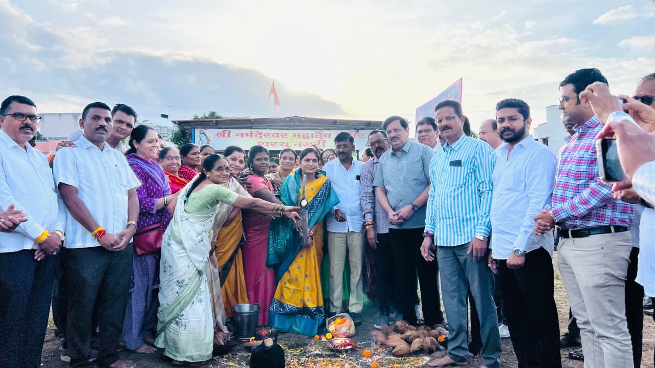 प्रभाग क्र. ३१ मधील शरयु पार्क येथे असलेल्या नर्मदेश्वर महादेव मंदिर परिसरात संरक्षक भिंत बांधण्याच्या कामाचा भूमिपूजन सोहळा आमदार सीमा महेश हिरे यांच्या हस्ते भक्तिमय आणि उत्साहपूर्ण वातावरणात संपन्न झाला. या उपक्रमामुळे परिसरातील नागरिकांमध्ये समाधानाची भावना निर्माण झाली आहे.
