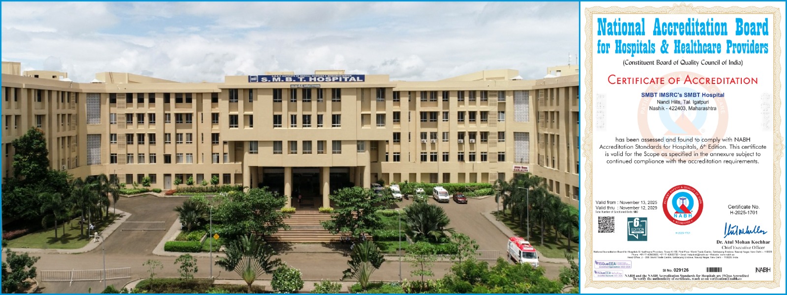 आरोग्यसेवा जितकी उत्तम, तितकीच ती महागडी असते, हा समज आता एसएमबीटी हॉस्पिटलने खोटा ठरवला आहे. उत्तर महाराष्ट्रातील सर्वात मोठे चॅरिटेबल हॉस्पिटल असलेल्या ‘एसएमबीटी’ला नुकतेच राष्ट्रीय स्तरावरील NABH (National Accreditation Board for Hospitals & Healthcare Providers) मानांकन प्राप्त झाले आहे. रुग्ण सुरक्षा, क्लिनिकल क्वालिटी, पेशंट अधिकारांना जपणारी आणि पारदर्शक उपचार पद्धतीचा हा राष्ट्रीय गौरव असून, जागतिक दर्जाची आरोग्यसेवा ही परवडणाऱ्या दरातही मिळू शकते, हे एसएमबीटी हॉस्पिटलने सिद्ध केले आहे.