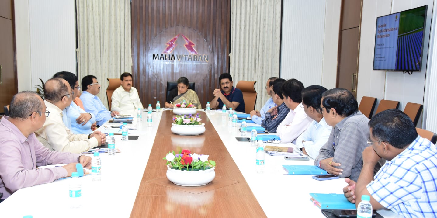 महाराष्ट्रातील विविध सौर ऊर्जा योजनांची अंमलबजावणी व माहिती घेण्यासाठी श्री. पुनीत कुमार यांनी महावितरणच्या ‘प्रकाशगड’ मुख्यालयास भेट दिली. यावेळी आयोजित बैठकीत अपर मुख्य सचिव (ऊर्जा) सौ. आभा शुक्ला व महावितरणचे अध्यक्ष व व्यवस्थापकीय संचालक श्री. लोकेश चंद्र यांनी विविध सौर योजनांमुळे सन २०३० पर्यंत राज्याच्या वीजक्षेत्रात होणारे आमुलाग्र बदल, ग्राहकाभिमुख फायदे, वीज दर कपात, आर्थिक गुंतवणूक व रोजगार संधी आदींची माहिती दिली. यावेळी संचालक श्री. सचिन तालेवार (संचालन/प्रकल्प), श्री. योगेश गडकरी (वाणिज्य), श्री. राजेंद्र पवार (मानव संसाधन) उपस्थित होते.