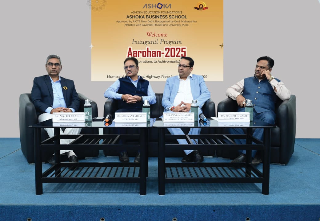 येथील अशोका बिझनेस स्कुल कॅम्पसमध्ये 2025-27 च्या नवीन एमबीए बॅचसाठी आरोहण-2025 या इंडक्शन कार्यक्रमाचे आयोजन केले होते. कार्यक्रमाची सुरुवात विद्यापीठ गीताने झाली नंतर प्रभारी संचालक डॉ.महेश वाघ यांनी सर्व विद्यार्थ्यांचे स्वागत करून शिस्त, सातत्य, नेटवर्किंग या यशासाठी आवश्यक आधारस्तंभांवर भर दिला.विद्यार्थ्यांच्या शैक्षणिक गुणवत्ता वाढीसाठी अशोका बिझनेस स्कूल नेहमीच सक्रिय असते. यावर त्यांनी प्रकाश टाकला.