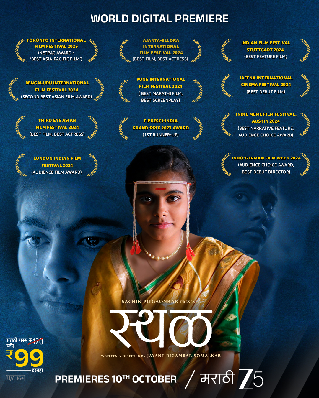 यंदाच्या शानदार फेस्टिव्हल रननंतर आणि यशस्वी नाट्यमय प्रदर्शना नंतर, झी5 अभिमानाने जाहीर करतो की बहुचर्चित मराठी चित्रपट स्थळचा वर्ल्ड डिजिटल प्रीमियर 10 ऑक्टोबर 2025 रोजी होणार आहे.